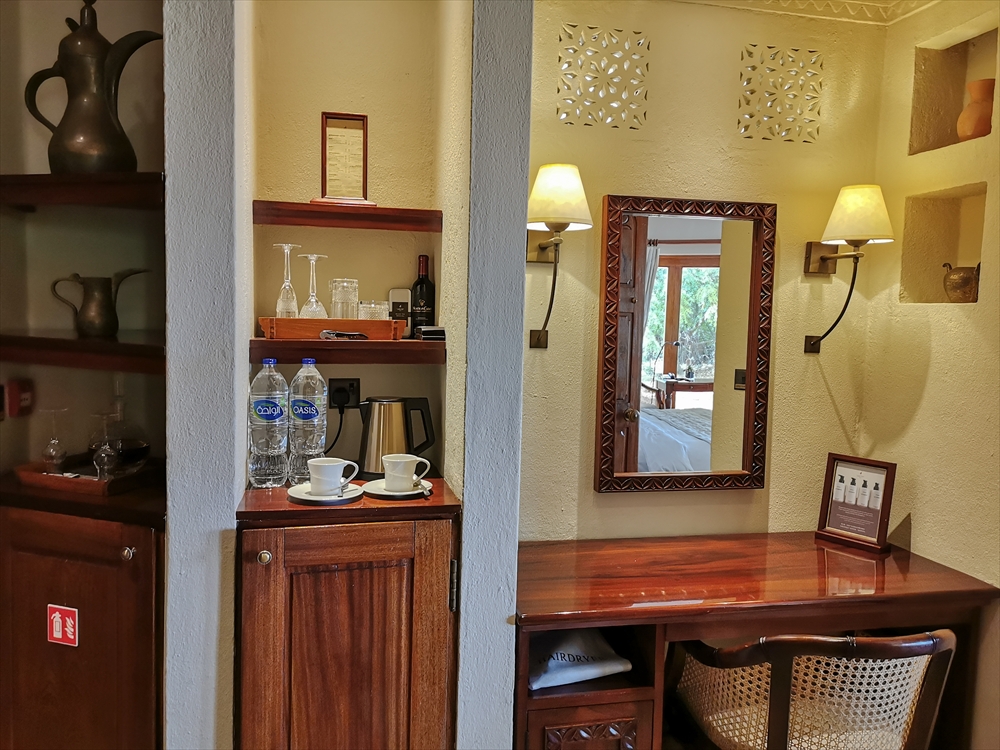 ウェルカムフルーツなどをいただきながら、砂漠の静寂を味わえます。