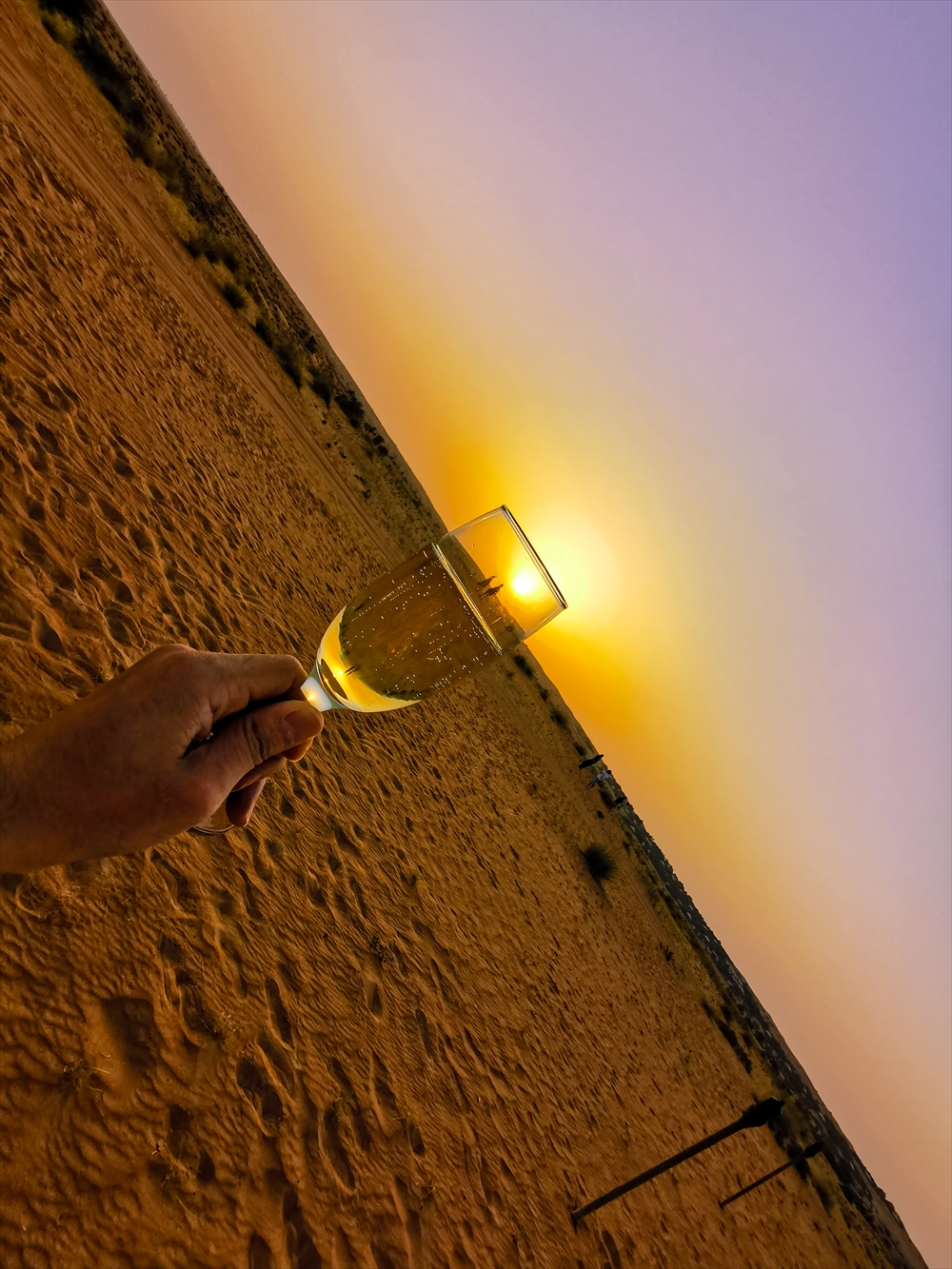 壮大な自然の中で、グラスを傾けながら見るサンセットは、