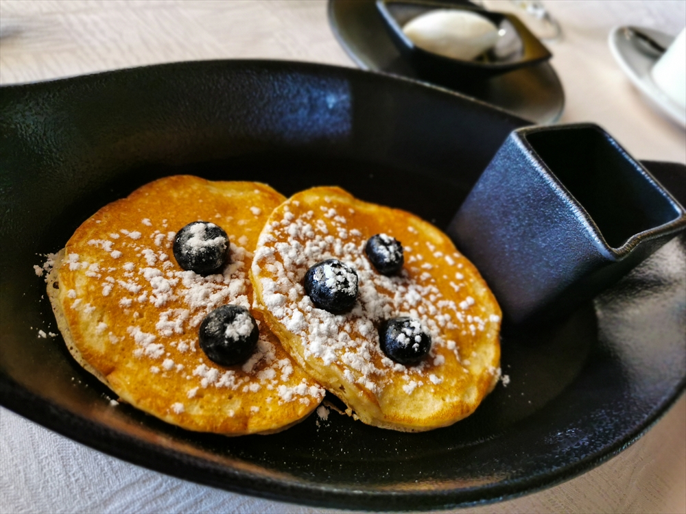 ブルーベリーが乗った小さなパンケーキもとても美味しく、